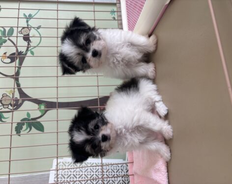 ミックス 父マルチーズ2㎏ 母チワワ1.7㎏ 実物でぇ~りゃ~可愛い~♡白茶の女の子と男の子が決まりました。残り2匹です。